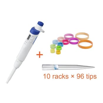 Eppendorf Research® 3 neo 1-channel; variable volume; ACT-labeled. Includes 960 ep Dualfilter T.I.P.S.®, and ColorTag pipette marking rings sample bag.